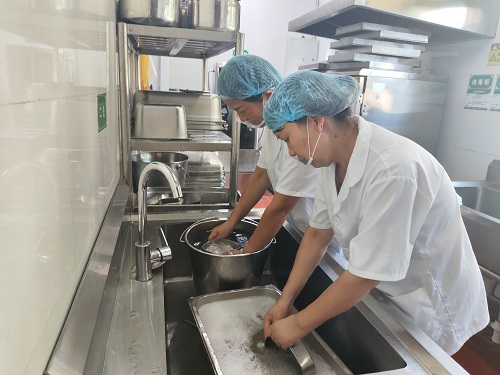 为给幼儿提供一个整洁、卫生、健康的环境,后勤团队对园区进行全方位打扫和消毒。从活动室、多功能厅到走廊、楼梯;从幼儿玩具、教具到桌面、地面、门窗;从大型户外器械到绿化带的每一个角落,保育老师们都彻底清扫擦拭、消毒与消杀,不放过任何一个卫生死角。她们用汗水守护卫生,用行动诠释责任,确保园所环境整洁明亮、安全无忧。