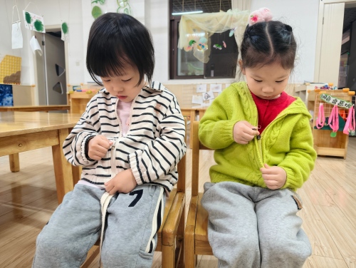 让孩子自己学会穿衣服,有助于孩子自理能力和精细动作的锻炼。系纽扣、拉拉链可以很好的锻炼孩子的精细动作,对孩子的大脑发育也有一定的好处。同时,这也有利于孩子认知能力的提升,在穿衣服的过程中,孩子需要保持足够的专注。