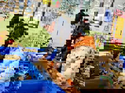 班级里的各个区域,都是孩子们挥洒童趣、学习交往的小天地。创意满满的美工区,一场黏土动物创作派对欢乐开启,宝贝们的小手捏捏揉揉、搓搓压压,忙着打造专属的小动物乐园,有的捏出尖尖的嘴巴和翅膀做小鸟,有的搓出细触角和薄翅膀做小蜜蜂,还有的把黏土搓成长条弯出 S 形做小蛇;温暖的阅读区,孩子们围坐分享绘本,讲述者声情并茂,小听众们专注投入,故事声与欢笑声交织成温馨的乐章;建构区的积木旁,一场 “冬日城堡” 搭建计划火热进行,大家围在一起分工协作,有的搬运积木,有的搭建塔楼,有的加固围墙,遇到积木不稳的难题时,还会一起商量调整,在齐心协力中,一座座创意满满的城堡拔地而起。