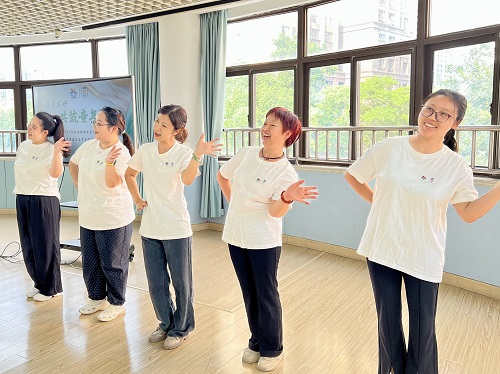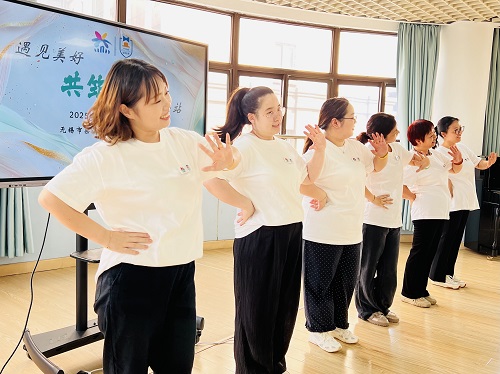 会场内,亲切活力的小班组教师,以一曲欢快律动《你好你好》充分调动家长的愉悦情绪,让家长们感受到园所的细致与专业、教师的活力四射。