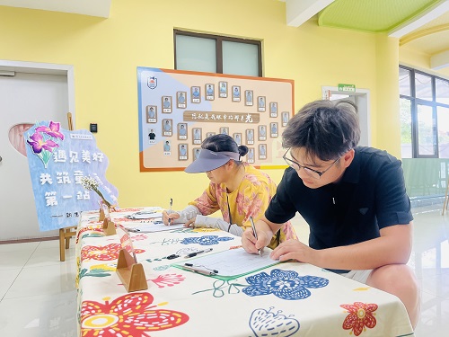 踏入园区,童趣的大厅、温馨的签到台洋溢着温馨的氛围,象征着孩子们即将在此展开的多彩生活。签到处老师们笑容可掬,热情引导每一位家长签名。
